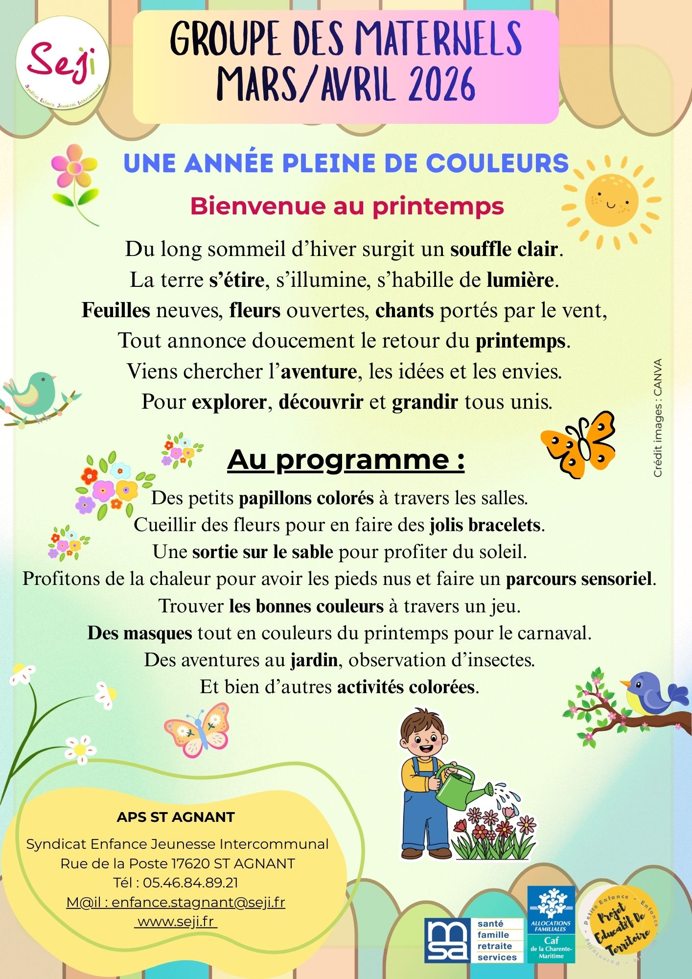 L’équipe de l’accueil périscolaire de St Agnant vous accueille du lundi au vendredi, sur les périodes scolaires de 7h15 à 19h00.