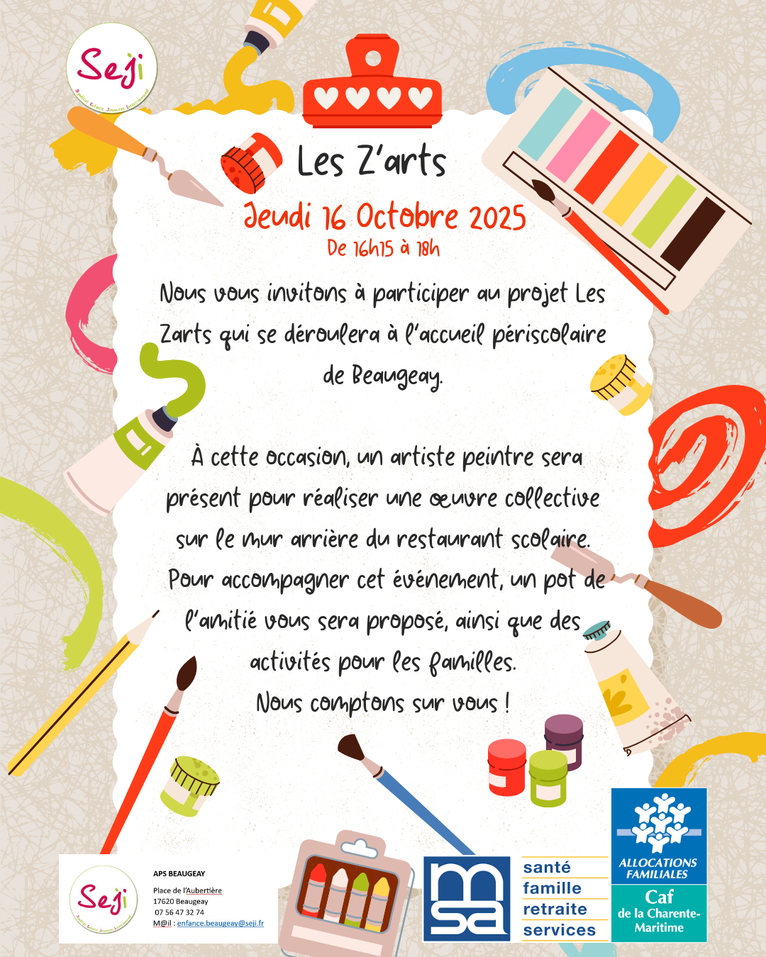 La semaine prochaine, l’accueil périscolaire de Beaugeay proposera un atelier de fresque murale dans le cadre du projet « Les Z’arts ».