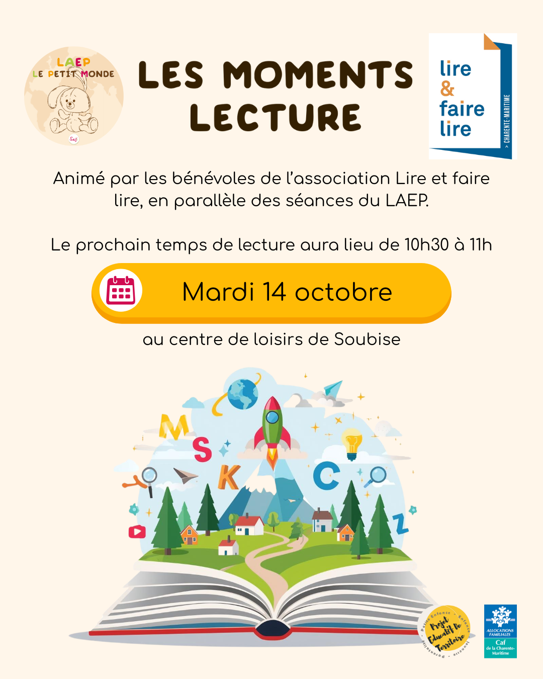 L’association Lire et faire lire et le Lieu d’Accueil Enfants Parents Le Petit Monde s’associent à nouveau pour proposer « Les moments lecture », des ateliers de lecture adaptés aux tout-petits et à leurs accompagnants.