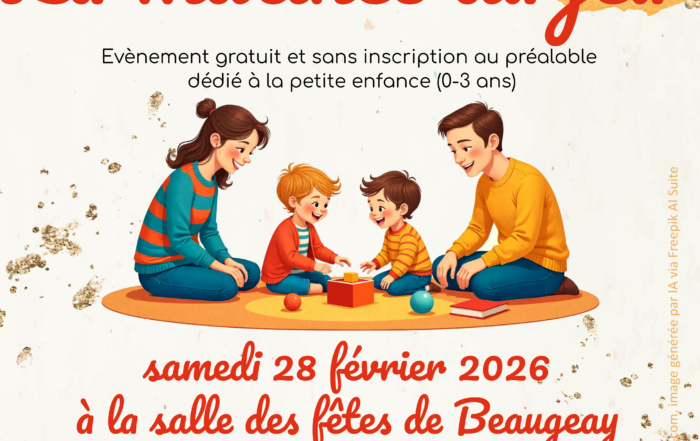 Matinée du Jeu : rendez-vous le 28 février à Beaugeay Le Relais Petite Enfance, en partenariat avec deux structures d'accueil du jeune enfant du territoire, vous invite à une [...]